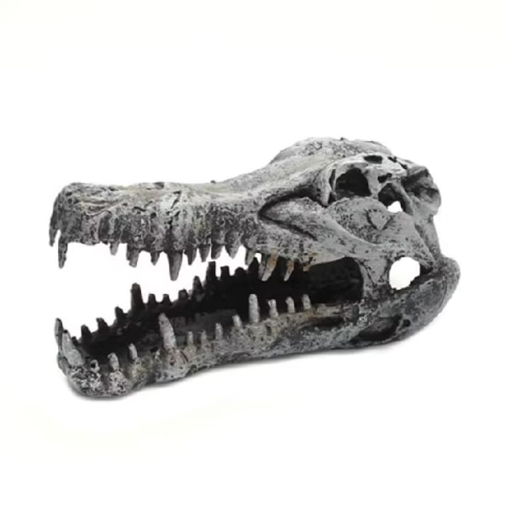 Enfeite decorativo Cabeça de Jacaré Fragata para aquários. Produz efeito natural e realista, resistente e atóxico, ideal para criar um ambiente diferenciado para os peixes.