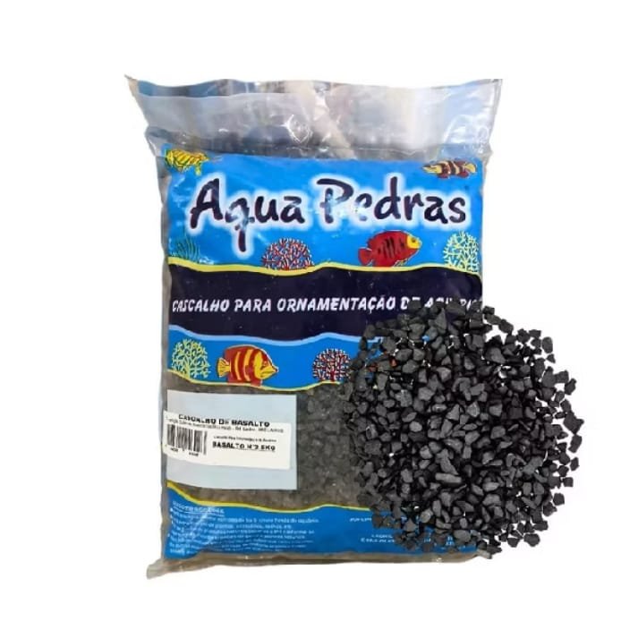 Substrato de basalto Aqua Pedras Nº2 em embalagem de 5Kg. Natural e resistente, ideal para aquários ornamentais, oferecendo base estável para plantas e decoração.