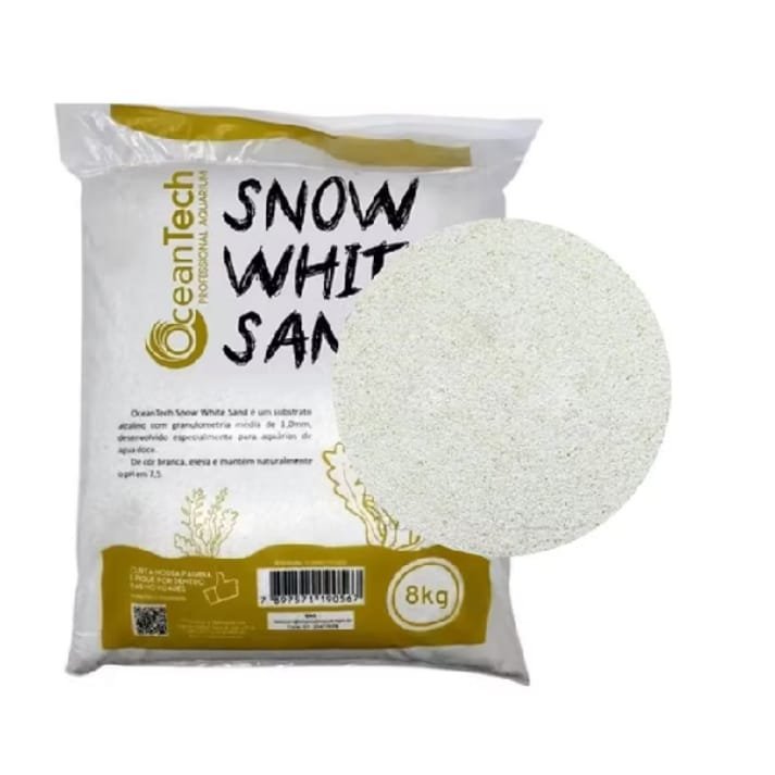 Areia branca de alta pureza, granulometria fina e visual sofisticado. Ideal para aquários de água doce ou marinhos, realça a cor dos peixes e mantém o ambiente equilibrado.