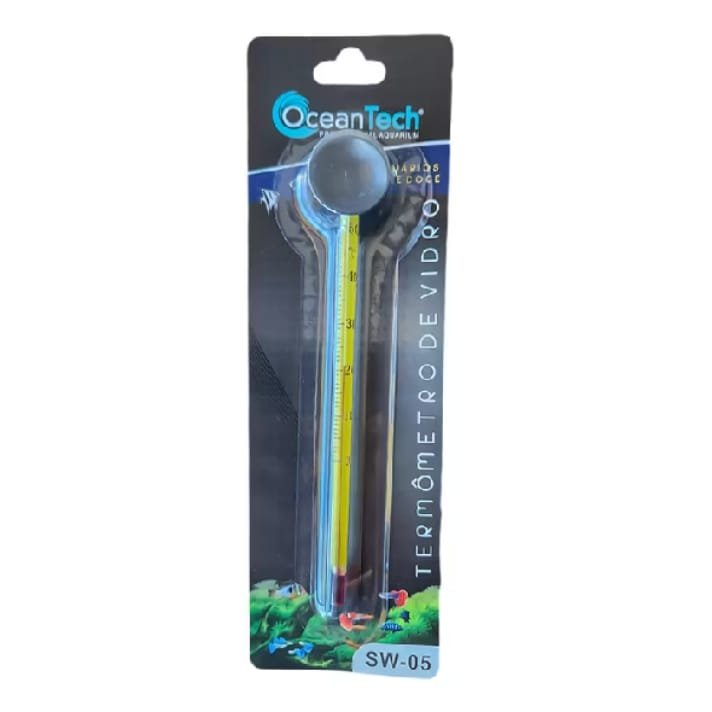 Mantenha o controle da temperatura do seu aquário com precisão. O termômetro de vidro Ocean Tech SW-05 é resistente, de fácil leitura e vem com ventosa para fixação no vidro. Essencial para garantir a saúde dos peixes.